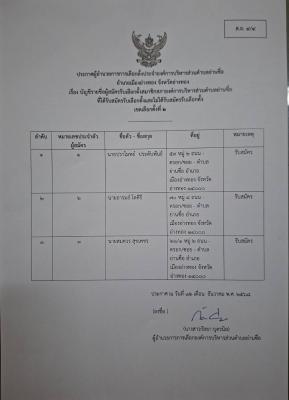 ประกาศผู้อำนวยการเลือกตั้งประจำองค์การบริหารส่วนตำบลย่านซื่อ อำเภอเมืองอ่างทอง จังหวัดอ่างทอง เรื่อง ชื่อผู้มีสิทธิสมัครรับเลือกตั้งนายกองค์การบริหารส่วนตำบลย่านซื่อ และชื่อผู้มีสิทธิสมัครรับเลือกตั้งสมาชิกสภาองค์การบริหารส่วนตำบลย่านซื่อ (ผ.ถ.4/5 และ ส.ถ