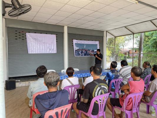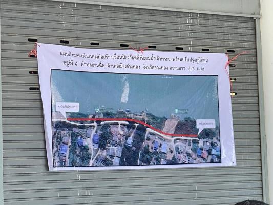 การประชุมครั้งนี้เป็นการชี้แจง โครงการก่อสร้างเขื่อนป้องกันตลิ่งริมแม่น้ำเจ้าพระยา