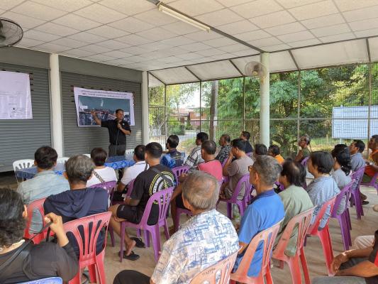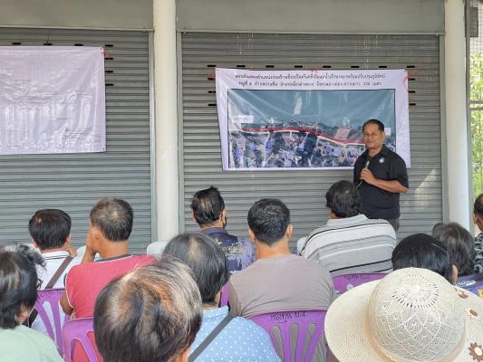 การประชุมครั้งนี้เป็นการชี้แจง โครงการก่อสร้างเขื่อนป้องกันตลิ่งริมแม่น้ำเจ้าพระยา